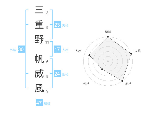 三重野 帆威風さんの総格は47画の5点!