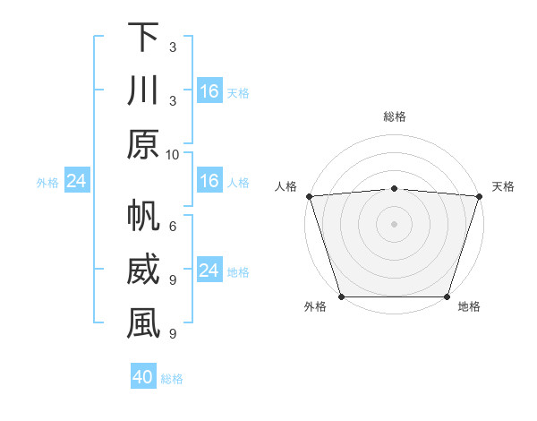下川原 帆威風さんの外格は24画の5点!