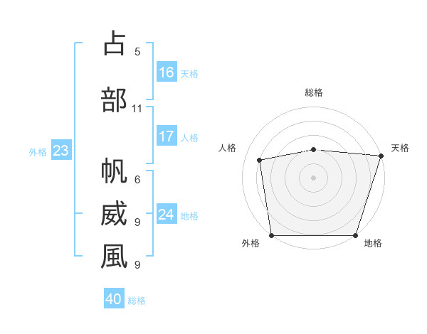 占部 帆威風さんの外格は23画の5点
