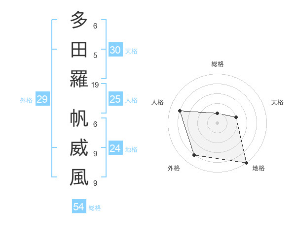 多田羅 帆威風さんを姓名の画数から五運を鑑定