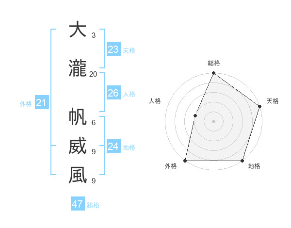 大瀧 帆威風さんの総格は47画の5点!