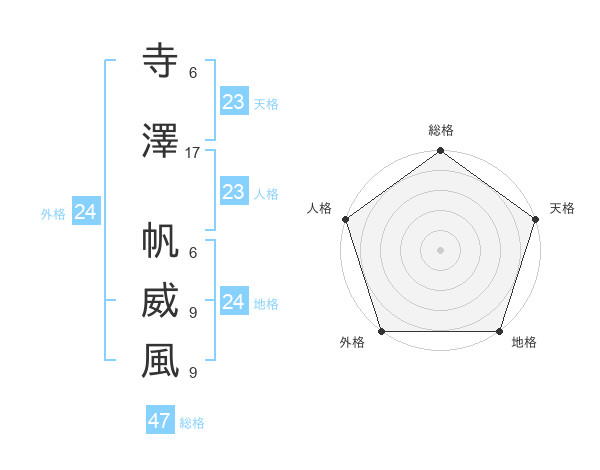 寺澤 帆威風さんを姓名の画数から五運を鑑定