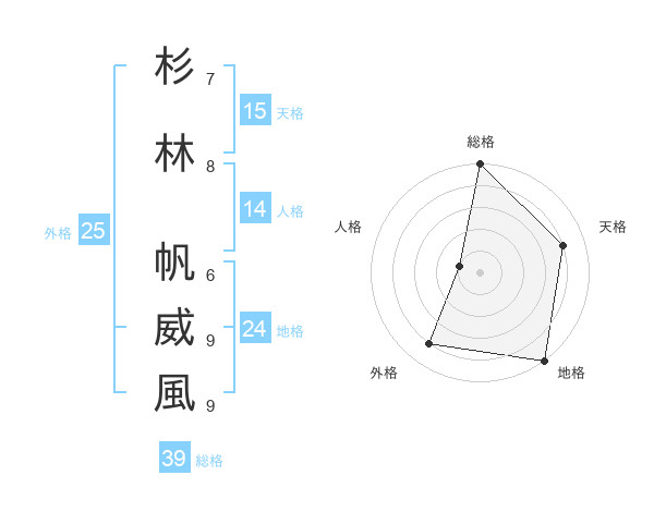 杉林 帆威風さんを姓名の画数から五運を鑑定