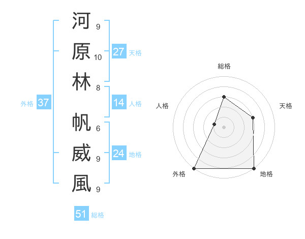 河原林 帆威風さんの総格は51画の3点!