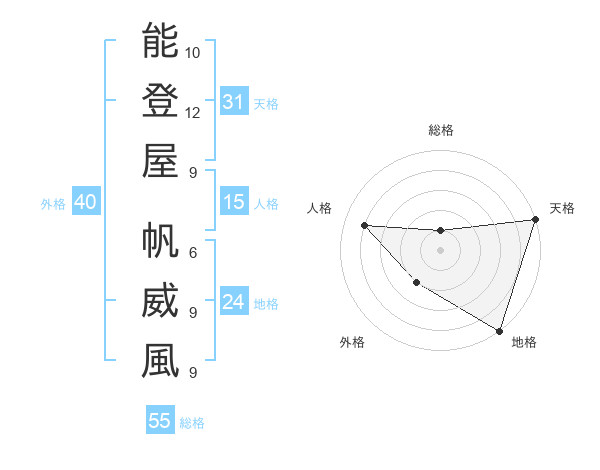 能登屋 帆威風さんを姓名の画数から五運を鑑定