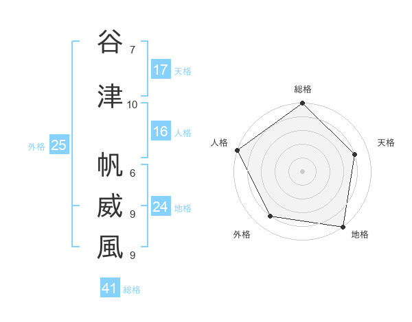 谷津 帆威風さんの総格は41画の5点!