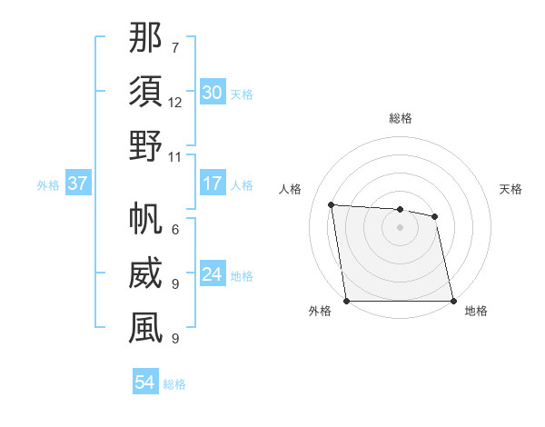 那須野 帆威風さんを姓名の画数から五運を鑑定