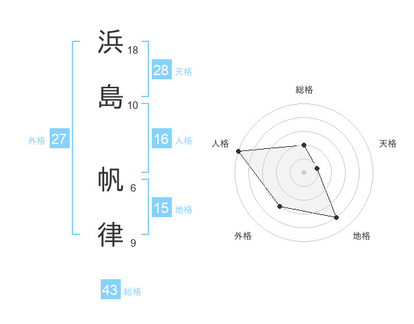 浜島 帆律さんを姓名の画数から五運を鑑定