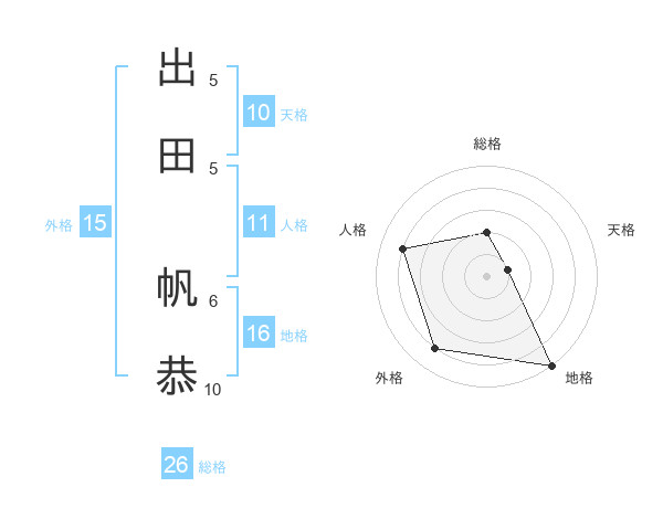 出田 帆恭さんの総格は26画の2点!
