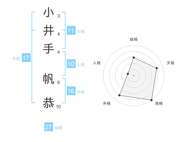 小井手 帆恭さんを姓名の画数から五運を鑑定