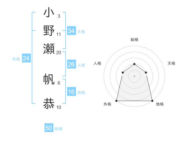 小野瀬 帆恭さんの総格は50画の2点!