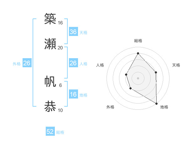 築瀬 帆恭さんを姓名の画数から五運を鑑定