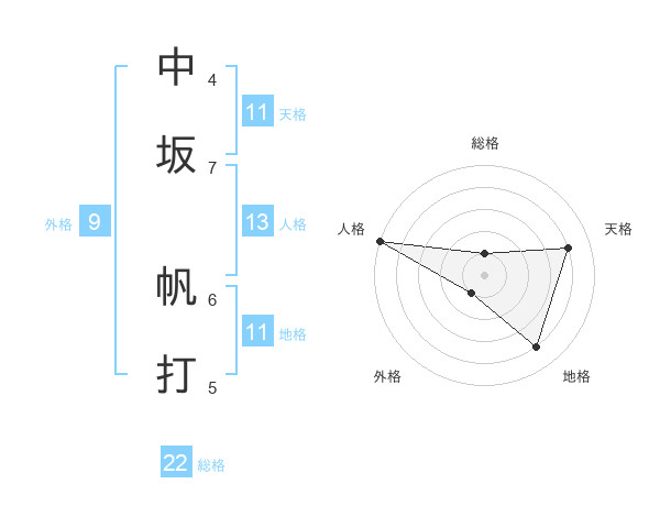 中坂 帆打さんの総格は22画の1点!