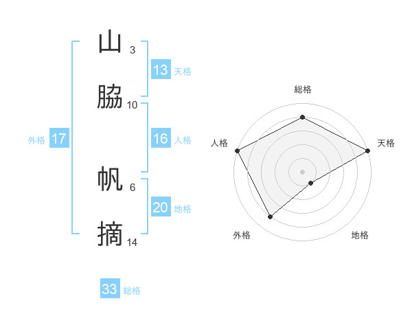 山脇 帆摘さんを姓名の画数から五運を鑑定