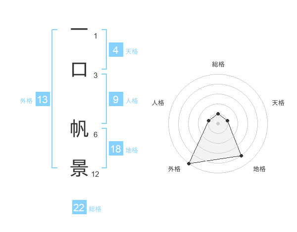 一口 帆景さんの外格は13画の5点!