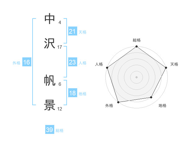 中沢 帆景さんを姓名の画数から五運を鑑定