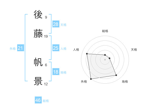 後藤 帆景さんの外格は21画の5点!