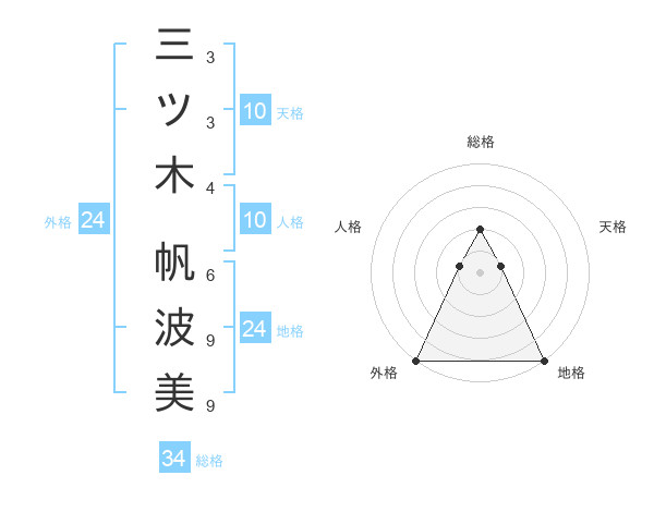 三ツ木 帆波美さんの総格は34画の2点!