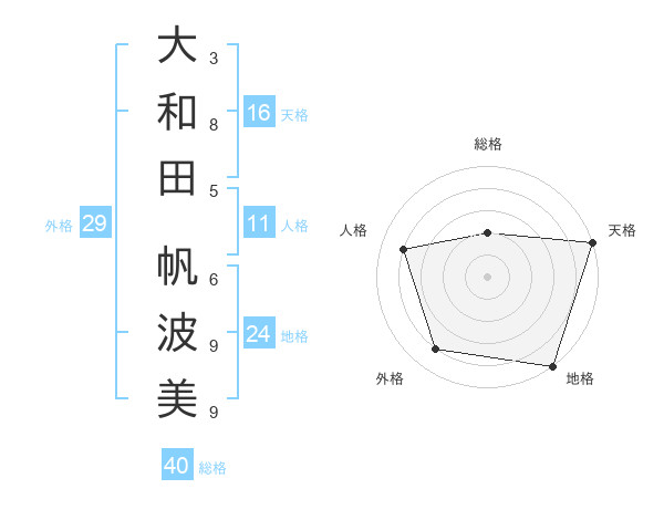 大和田 帆波美さんを姓名の画数から五運を鑑定