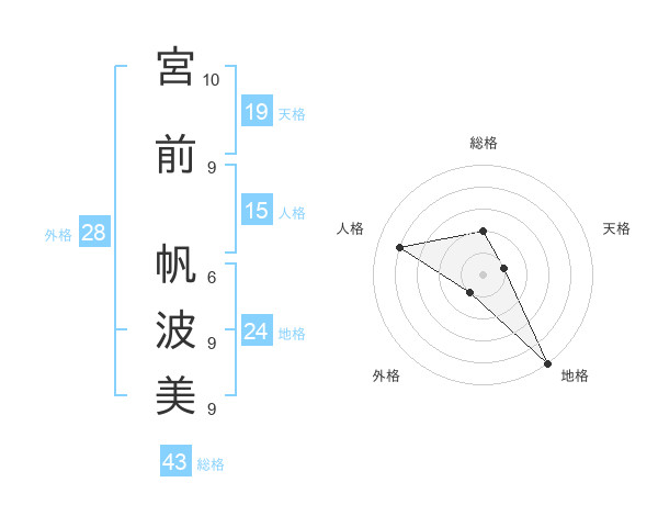 宮前 帆波美さんの総格は43画の2点!