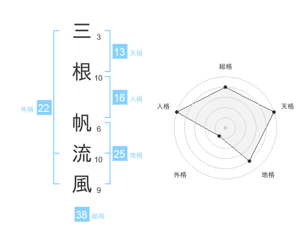 三根 帆流風さんを姓名の画数から五運を鑑定
