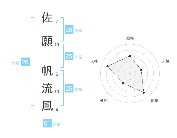 佐願 帆流風さんを姓名の画数から五運を鑑定