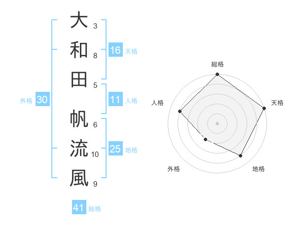 大和田 帆流風さんを姓名の画数から五運を鑑定