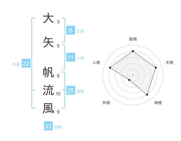 大矢 帆流風さんを姓名の画数から五運を鑑定