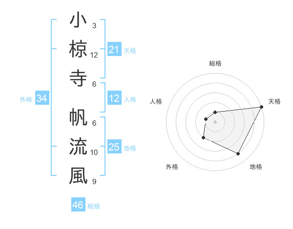 小椋寺 帆流風さんを姓名の画数から五運を鑑定