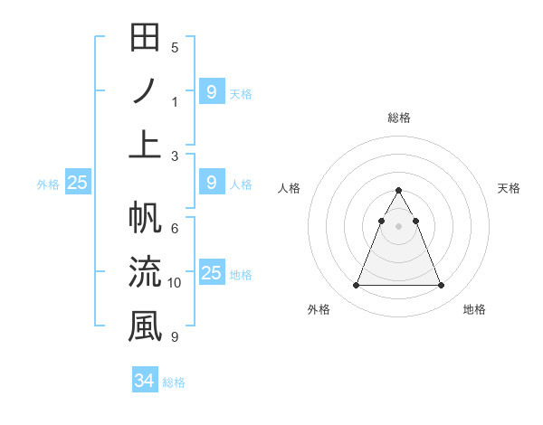田ノ上 帆流風さんの外格は25画の4点!