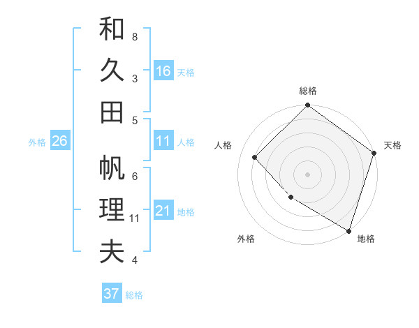 和久田 帆理夫さんの総格は37画の5点!