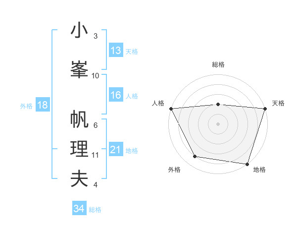 小峯 帆理夫さんの天格は13画の5点!