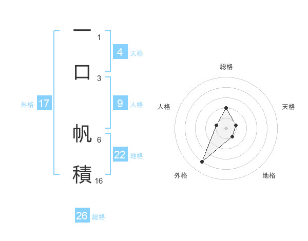一口 帆積さんの総格は26画の2点!