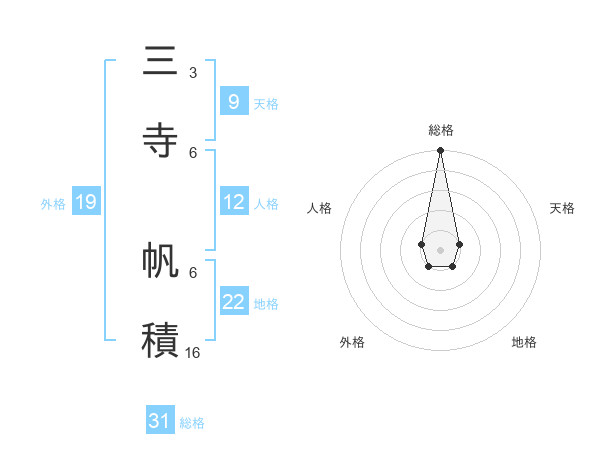 三寺 帆積さんの総格は31画の5点!