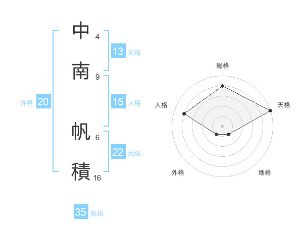 中南 帆積さんの天格は13画の5点!