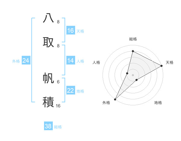 八取 帆積さんの総格は38画の4点!