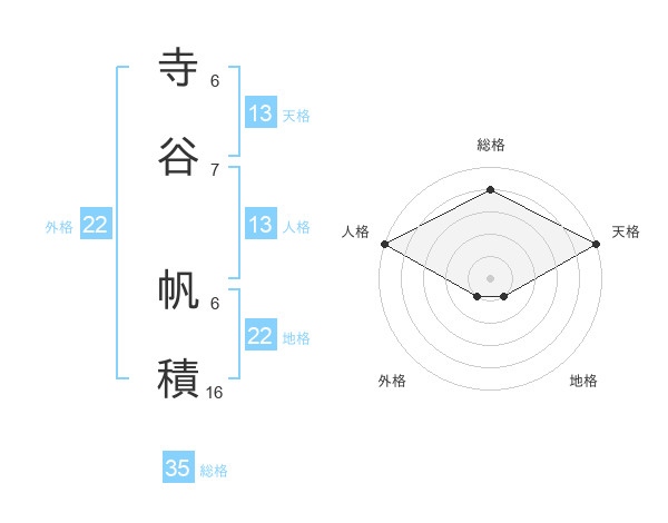 寺谷 帆積さんを姓名の画数から五運を鑑定