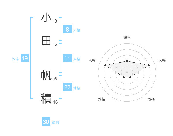 小田 帆積さんの総格は30画の2点!