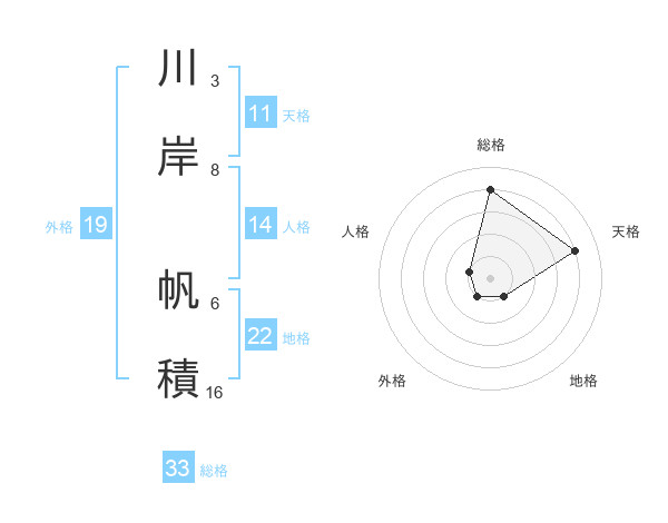 川岸 帆積さんを姓名の画数から五運を鑑定