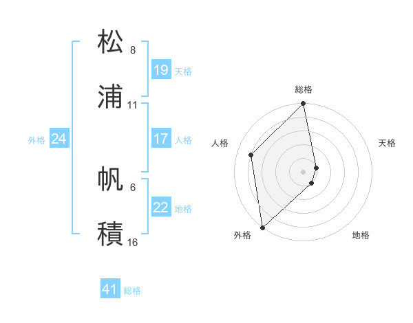 松浦 帆積さんの総格は41画の5点!