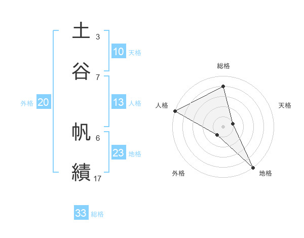 土谷 帆績さんを姓名の画数から五運を鑑定
