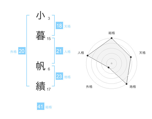 小暮 帆績さんの総格は41画の5点!