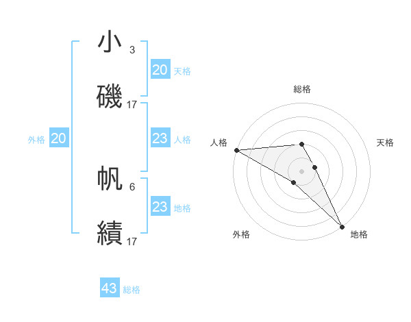 小磯 帆績さんを姓名の画数から五運を鑑定