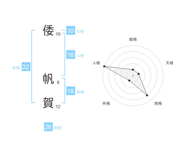 倭 帆賀さんを姓名の画数から五運を鑑定