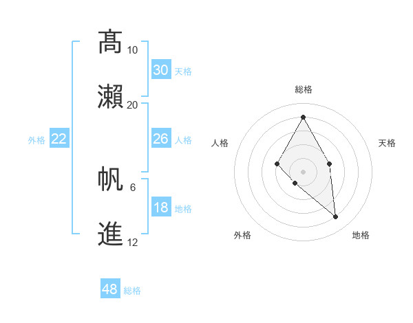 髙瀨 帆進さんを姓名の画数から五運を鑑定