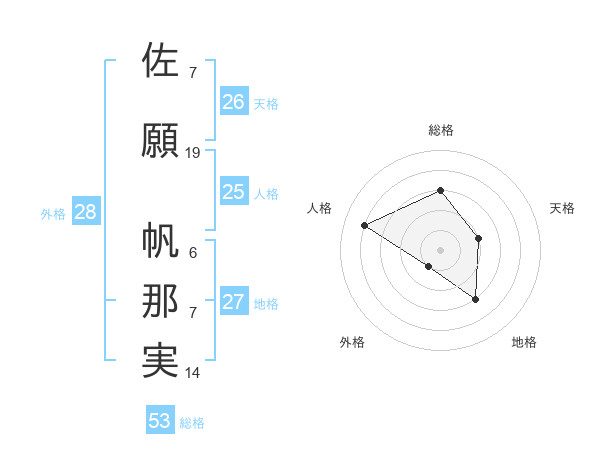 佐願 帆那実さんを姓名の画数から五運を鑑定
