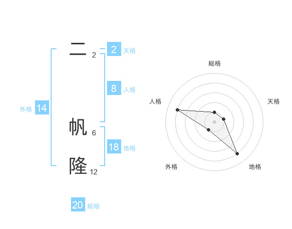 二 帆隆さんの総格は20画の1点!