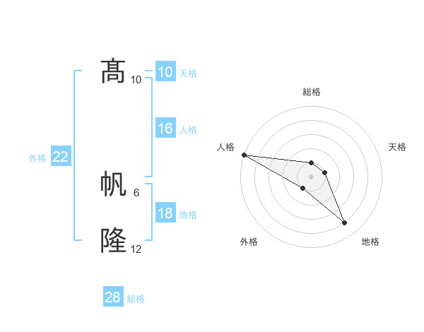 髙 帆隆さんの総格は28画の1点!