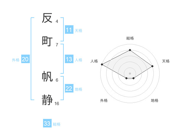 反町 帆静さんの総格は33画の4点!