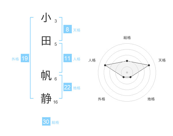 小田 帆静さんの総格は30画の2点!